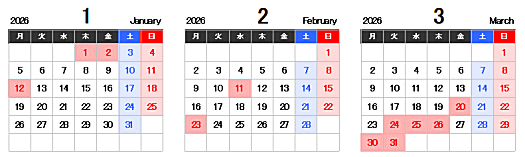 ※赤数字は休校です